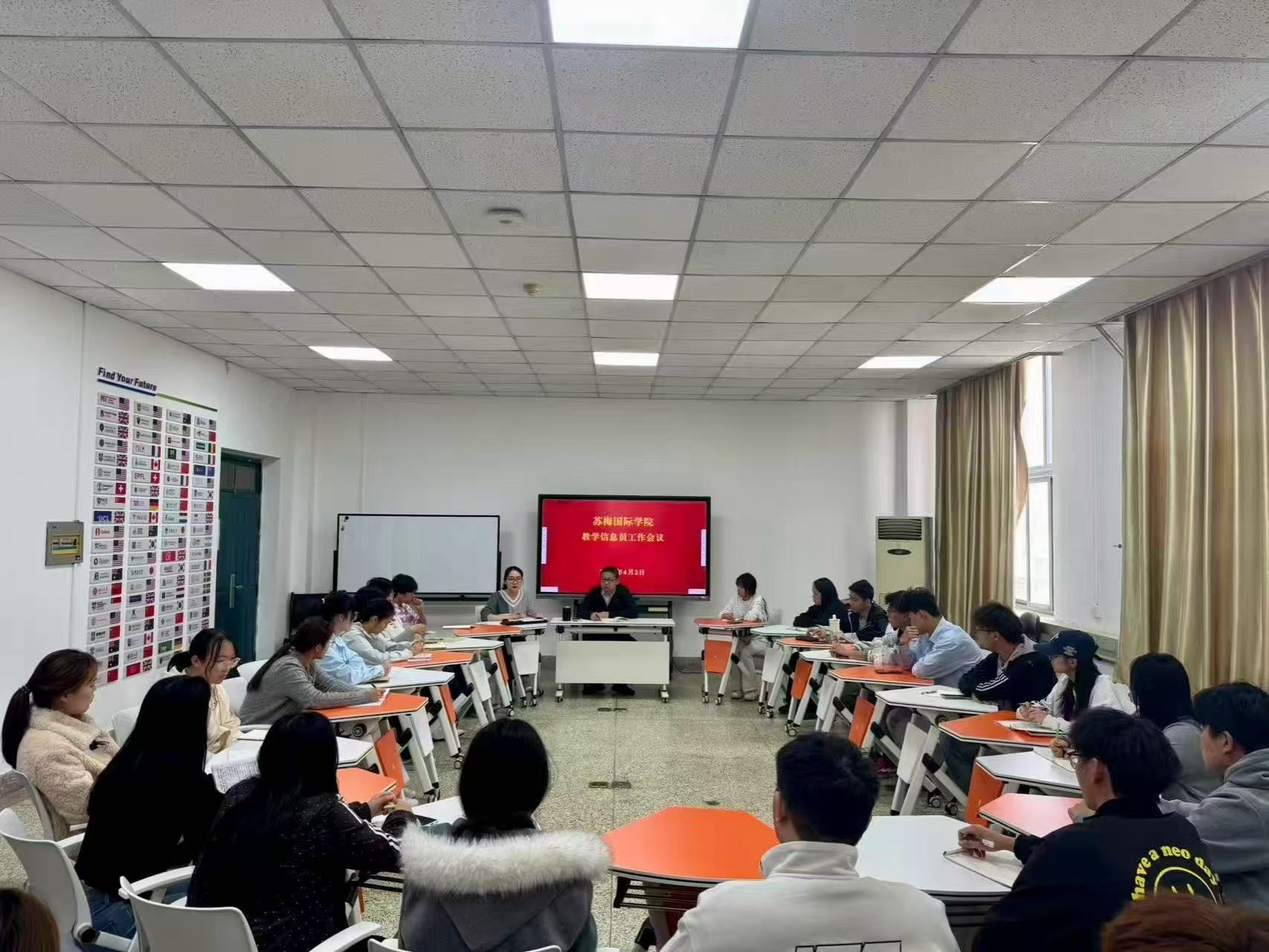 4月2日,苏梅国际学院在学院会议室召开2026年教学信息员工作会议,新聘任的27名教学信息员参加会议。