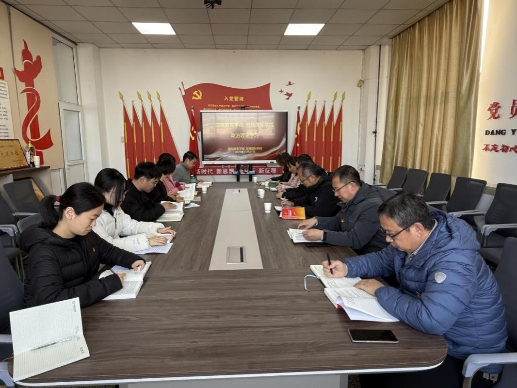 11月27日,国际教育学院(苏梅国际学院)在博闻楼501党建活动室召开党委理论学习中心组(扩大)会议,集中学习党的二十届四中全会精神,学院领导班子成员和全体教工参加。会议由学院党委书记张平主持,校党委宣传部理论教育科科长杨运华巡听了学习会。
