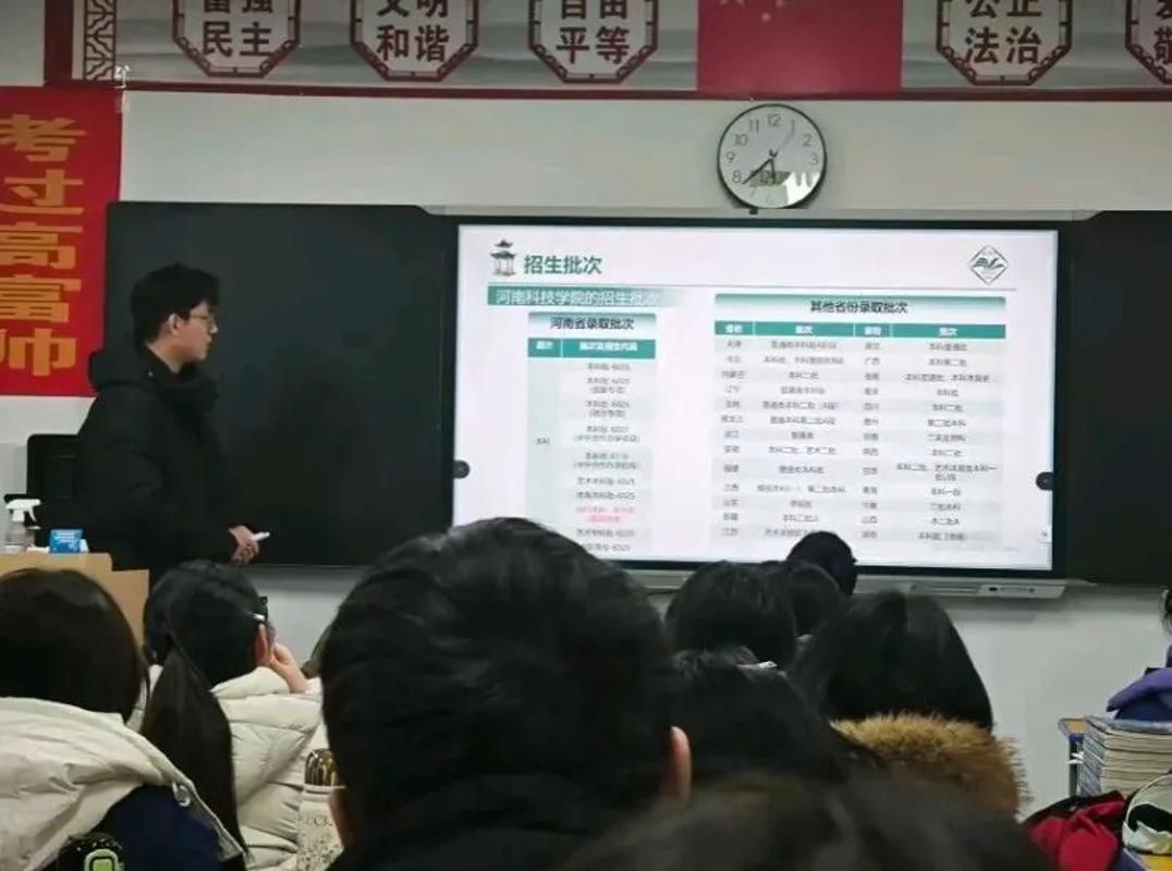 走进高三教室,一双双充满期待的眼睛,让我既紧张又感动。我先分享自己的高三经历,用真实感受打破陌生感,再结合图片与视频,细致介绍河南科技学院的学习生活环境与发展平台。互动环节中,同学们踊跃提问,从录取分数、专业选择,到宿舍条件、学习压力,问题真诚又迫切。我耐心逐一解答,鼓励他们稳住心态、脚踏实地,坚持到最后一刻。