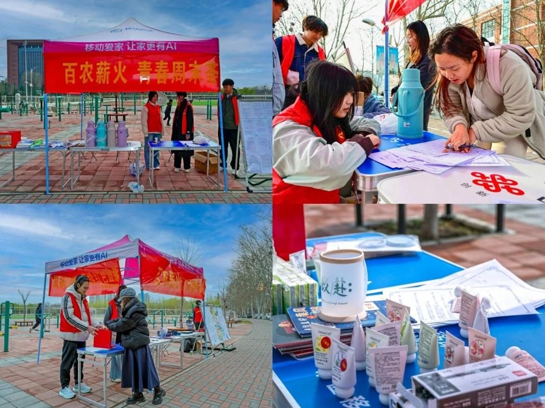 春日的河南科技学院校园暖意融融,当清晨的第一缕阳光洒向大地,志愿者们便开始忙碌起来。搬运桌椅、摆放展板、整理奖品等,帐篷上“百农薪火·青春周末荟”的标语格外醒目,手抄报获奖作品整齐张贴,优秀征文的精彩片段摘录点缀其间,志愿者们共同协作,准备工作井然有序。